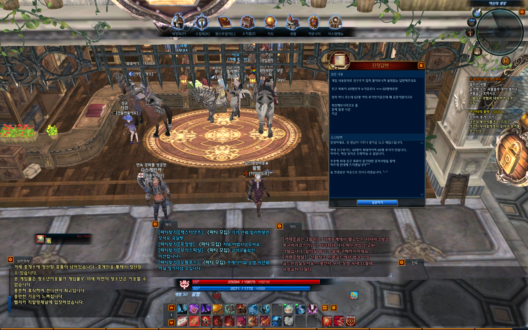 1. 최초 30렙(이건 뭐..) 2. 친구추가(친구목록이 60명이되서 꽉꽉채워야 된답니다 ^^ 3. 판도라에 손목을건 (이거 따신분 계신가요 -_-) - 1렙크리스탈 200여개 써서 했는데 최대 3번까지만 되더군요 (4번째에서는 성공하는거 같긴한데 판도라의 상자가 빛이 납니다! 고러고 열려서 그동안 크리스탈 다줌.. 한번성공에 2배 3배 4배 늘어날때도잇고 2배 3배 5배 6배 까지되더군요... 성공률은 거의 실패하고 2번은 간간히뜨고 3번은 어쩌다 뜨고 판도라의 상자에서 빛이납니다는 후덜덜.. 200번할동안 3번본듯.. 5번은 어떻게 하라는거냐 ㅡㅡ 그리고 전체메시지일지는 모르겠으나(9강성공때처럼) 이름과함께 채팅창 처럼 화면에 글씨 프린트됨.. 진정넣었더니 성공으로 인정안됩답니다) 4. 채집 300과 마스터 5. 제작 500(?) ~ 마스터 6. 발키온대륙 아룬대륙 탐험(업데이트.. ) 7. 전장. 영주 관련(업데이트...)