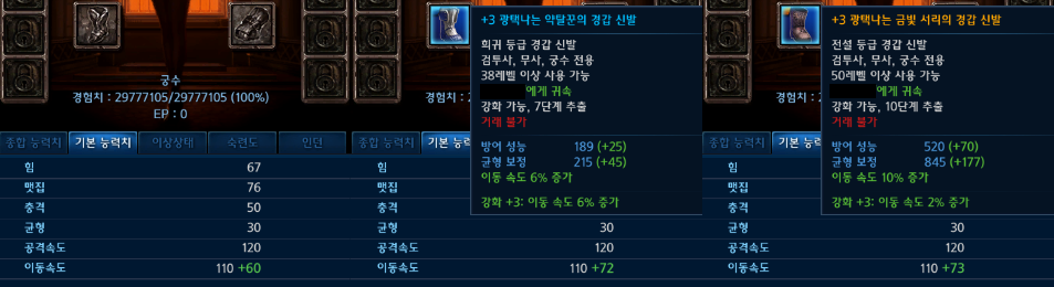 궁수 캐릭터의 기본 이속은 110