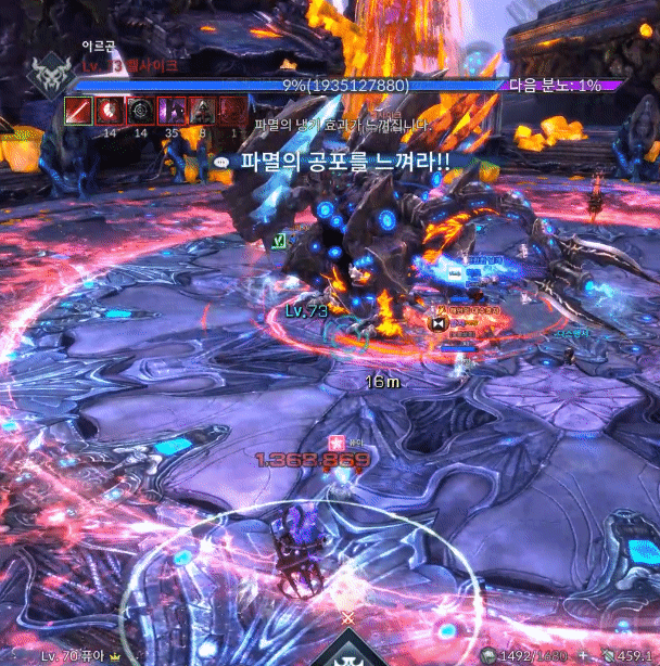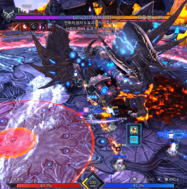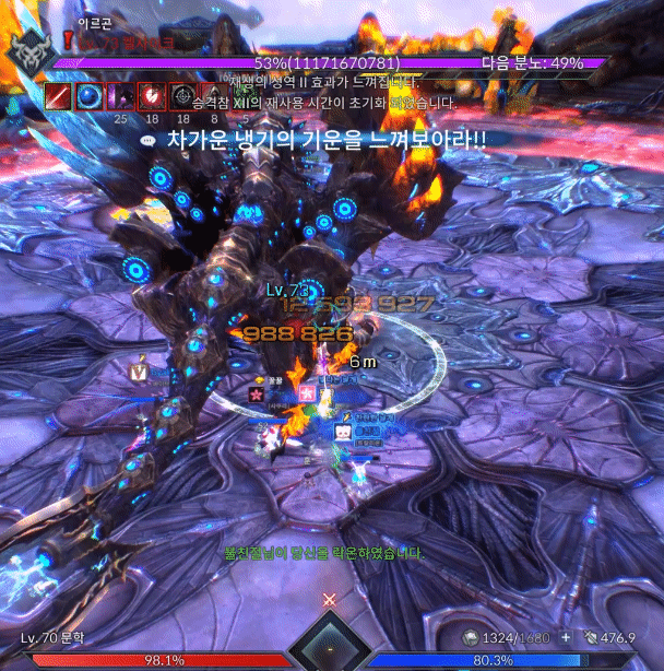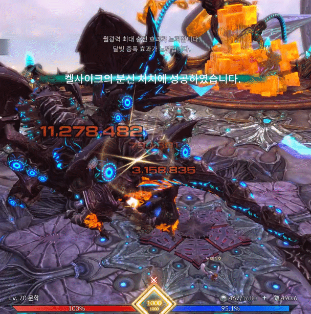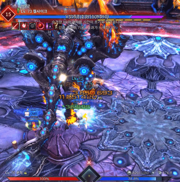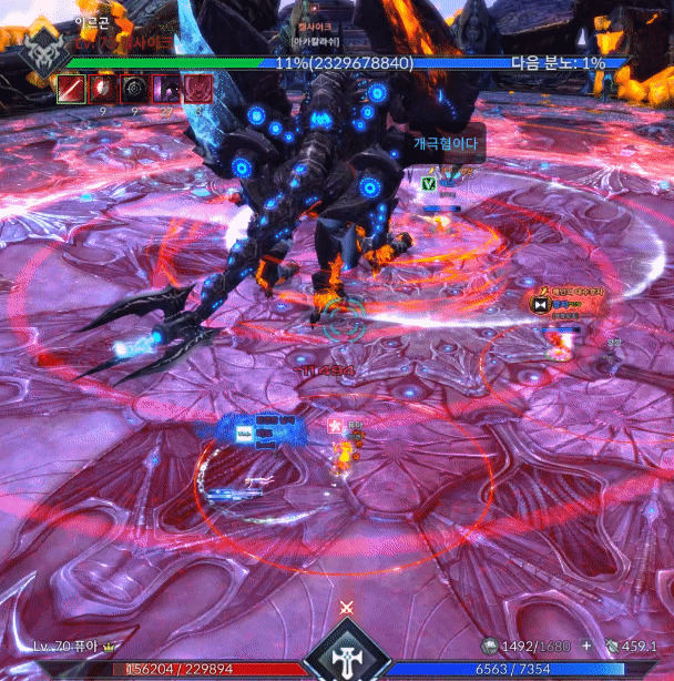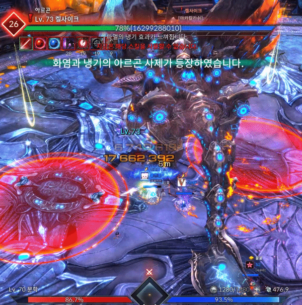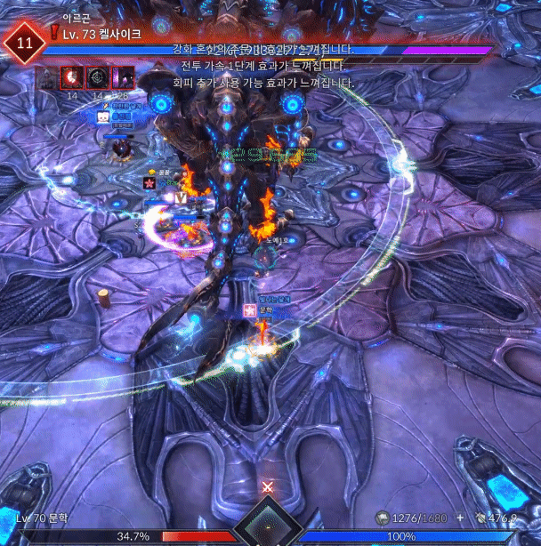 움짤로 보는 켈사이크 은폐지 간단공략안녕하세요. 월광무사 유저 꿀입니다. 불멸의/켈사이크 은폐지 인던이 새로 업데이트가 되었는데, 하급 트라이를 하실 분들을 위해 간단히 공략을 작성해봅니다. 탱패턴은 왼발 오른발말곤 크게 없기도하고, 사제가 아닌 딜러시점이니 잘 보이지않더라도 양해바랍니다. 짤패턴이 많고 중요패턴이 몇개없으니 간단하게 보러 가시죠. ================================================================================= 아카칼라쉬 켈사이크가 크게 포효합니다 ![]() [ 틱데미지 회피 가능 / 방어 불가 ] 첫 진입시 켈사이크가 포효하며 주변에 틱데미지를 줍니다. 힐업패턴이며 입장시 업화가 없기때문에 데미지가 반감되어 들어가니 초분과 극딜은 포효이후 양발때 업화디버프 갱신 후 시작하는게 좋습니다. 탱커는 양발찍기를 방어시 업화가 갱신되지 않으니 유의하시기 바랍니다. 양발찍기 / 양발 스턴찍기 양발찍기 ![]() [ 회피 가능 / 방어 가능 ] 양발을 들었다 빠르게 내려찍습니다. 피격데미지는 미미한 편이며 피격시 왼발쪽은 냉기의 업화, 오른발쪽은 화염의 업화로 기존 보유중이던 업화디버프가 갱신됩니다. 보유한 업화를 다른 속성의 업화로 갱신하지 않고 지속시간이 다할 시 즉사합니다. 업화 디버프는 중첩되지 않으며 같은속성의 업화로는 시간이 갱신되지 않습니다. 양발 스턴찍기 ![]() [ 회피 가능 / 방어 불가 ] 업화양발보다 느린속도로 발을 더 높게든 후 내려찍습니다. 전측방 피격시 기절 상태이상에 걸리고 후방 피격시 출혈 상태이상에 걸립니다. 출혈 상태이상에 걸릴 시 HP회복량이 감소하고 지속적으로 체력이 감소합니다. 기절 상태이상에 걸리고 정화가 바로 이루어지지 않을 경우 다음 패턴으로 크하하하하하!! 패턴을 사용합니다. 크하하하하하!! ![]() [ 회피 가능 / 방어 가능 ] 양발 스턴 찍기 이후 기절 상태이상이 해제되지 않았을 시 켈사이크가 멘트와 함께 뒤로 점프하여 돌리기 패턴을 합니다. 힐러의 수갑, 강축으로 밀림에 저항할 수 있습니다. 꼬리치기 ![]() [ 회피 가능 / 방어 가능 ] 꼬리로 후방에 있는 대상을 후려칩니다. 피격시 기본적으로 경직이나 다운이 걸리며 시전중이던 스킬이 취소되고 출혈 상태이상, 85% 미만에서부터는 공중으로 날아갑니다. 사제의 구원의손길, 각성 / 정령사의 파티 텔레포트로 기상이 가능하며 수호의 갑옷이나 강화 축복의기운(이하 강축)으로 경직이나 날라감에 저항할 수 있습니다. 얼음폭풍 / 화염기둥 얼음폭풍 ![]() [ 틱데미지 회피 가능 / 방어 가능 ] 발 주변에 얼음오오라가 휘몰아치고 양발을 내리찍으며 틱데미지를 줍니다. 피격시 냉기의 업화 디버프로 갱신됩니다. 화염기둥 ![]() [ 회피 가능 / 방어 가능 ] 발 주변에 화염오오라가 휘몰아치며 포효와 동시에 본체를 시작으로 주변에 화염기둥을 생성하여 공격합니다. 피격시 다운되며 화염의 업화 디버프로 갱신됩니다. 수호의 갑옷, 강축으로 다운에 저항할 수 있습니다. 점프 ![]() [ 회피 가능 / 방어 불가 ] 켈사이크가 몸을 여러번 흔든 후 점프하여 내리찍습니다. 피격시 공중에 높게 뜨게되며 공중에 뜬 동안은 스킬 시전이 불가능합니다. 85% 포효후 밀치기 ![]() [ 첫 포효 회피 가능 / 방어 불가 ] [ 두번째 포효 회피 가능 / 방어 불가 / 창기사 방벽 전개로 방어 가능] [ 두번째 포효 틱데미지 회피 가능 / 방어 불가 / 창기사 방벽 전개로 방어 가능 ] 켈사이크의 체력이 84%로 갱신되자마자 무적상태가 되며 크게 움츠러듭니다. 이후 양쪽 날개를 편 후 양발에 기를 모은 후 포효합니다. 첫 포효 피격시 다운되며 수호의갑옷, 강축으로 저항이 가능합니다. 두번째 포효 피격시 스킬사용불가 이상상태가 걸리며 막대한 데미지와 함께 맵 외곽으로 밀쳐집니다. 두번째 포효는 회피기나 창기사 방벽전개, 인술사 연막으로 회피 가능하며 이후 틱데미지는 힐러의 힐업을 받으면 됩니다. 멘트가 하나 뜨는데 남아있는 속성방패와 본인이 보유한 업화 디버프가 동일할 시 공격스킬의 위력이 25% 반감되어 들어갑니다. 이 방패는 각각 냉기와 화염의 켈사이크 분신을 처치시 사라집니다. 79% 39% 아르곤 사제 / 분신 처치하기 업화속성에 맞는 사제 처치 후 아르곤정수 획득 ![]() 켈사이크의 체력 79%와 39%때 아르곤 사제가 두마리 소환됩니다. 각자 냉기의 사제, 화염의 사제 총 두마리씩 소환되며 분신 켈사이크의 속성과 일치한 사제'만' 처치할 시 아르곤 사제의 정수가 1개 드랍됩니다. 두마리 모두 처치시 분신 켈사이크의 맷집이 올라가게 되기 때문에 속성이 전부 일치한 사제 한마리만 처치하시기 바랍니다. 아르곤 사제는 켈사이크에게 광폭화 버프를 부여하기 때문에 최대한 빠르게 처치해야 합니다. 이후 딜러가 정수를 획득하여 도약대를 사용해 켈사이크의 분신이 있는 지역으로 이동합니다. ![]() [ 도약대를 사용하여 켈사이크 분신이 있는 지역으로 이동 ] ![]() [ 분신 처치후 켈사이크의 정수 획득후 도약대로 이동 ] [ 도약 모션중 모든 패턴에 대해 무적 ] 아르곤 사제가 처치된 직후 2분의 타이머가 가동되며 켈사이크의 분신을 처치하면 분신 켈사이크의 정수가 드랍됩니다. 정수 