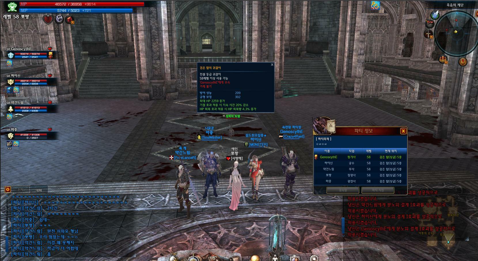 또 저희팟 딜러들의 무기가 소위 쩌는템들이 아닌 거친황야나 수제템에다가 강화도 6활(황야) 7대검(수제) 8도끼(황야) 이런템들인데도 처음가서 무난하게 깼으니 그렇게 어렵지 않은 던전이라고 생각이 됩니다.