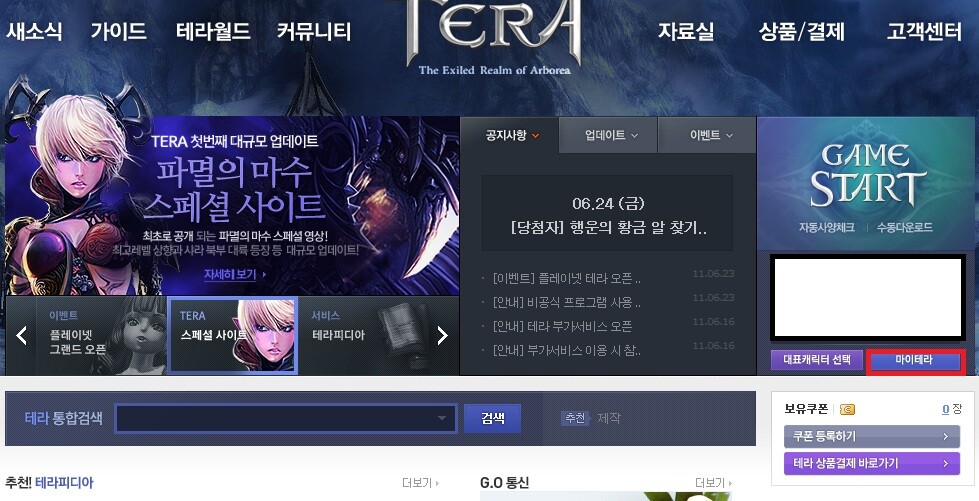 메인 홈의 마이 테라 메뉴를 이용하시면 됩니다. 자! 다음으로 ~