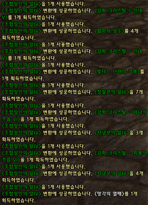 조합장인의 알 IV 30개 사용한 결과네, 말 그대로 30개를 연속으로 사용한 결과입니다. 밑에는 과정 스샷 입니다, 정리된 내용을 보시려면 아래로 쭉~