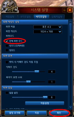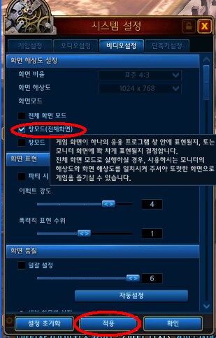 1. 단축키 O(시스템설정)눌러 창모드(전체화면)을 체크후 적용