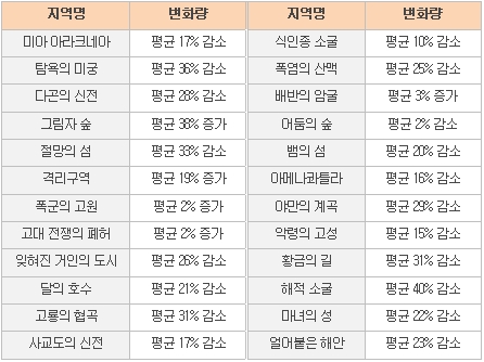 ν 아룬 남부 대륙의 솔로 플레이 성장률이 약 1.5배로 증가되었습니다.