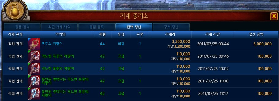 위의 2사진은 최근 거래내역을 최근시간순으로 내열한 사진입니다 보시는바와같이 지팡이는 엄청나게 비싼가격에 매매되고 있음을 볼수 있고