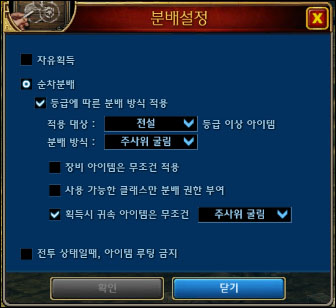 안녕하세요. 테라 입니다. 2011년 08월 19일 (금), 신규 시스템 업데이트를 위한 임시점검이 진행될 예정입니다. 자세한 점검 일정은 아래에서 확인해 주시길 바랍니다. [08월 19일 테라 임시점검 진행 안내] ▣ 점검 일장 : 2011년 08월 19일 (금) 08:00 ~ 10:00 (약 2시간) ▣ 점검 대상 : 테라 전체 서버 ▣ 점검 내용 : 게임 내 업데이트 적용 ※ 임시점검이 진행되는 동안에는 홈페이지에서 상품 결제를 이용할 수 없습니다. ※ 06:00 ~ 10:00에는 진정 시스템 점검으로 인해, 게임 내 진정문의 접수가 불가능합니다. 이 시간 동안의 문의 사항은 [홈페이지 → 이메일 문의]로 보내주시길 바랍니다. [08월 19일 업데이트 내용 미리보기] ▦ 주요 업데이트 내용 ▦ ▣ 획득 시 귀속 시스템 추가 • 획득 시 귀속이 추가되면서, 주사위 시스템과 파티원 추방 투표 시스템이 함께 추가되었습니다. • 획득 시 귀속 시스템이 추가되며 높은 레벨 장비 아이템의 밸런싱이 크게 변경되었습니다. 상세 내용은 아래의 링크를 참고 바랍니다. ▦ 세부 업데이트 내용 ▦ ▣ 획득 시 귀속 시스템 추가 • 획득 시 귀속 시스템 ν 인스턴스 던전에서 획득할 수 있는 일부 높은 등급의 장비 아이템들은 획득 시 귀속 상태로 등장합니다. ν 획득 시 귀속 아이템은, 아이템을 획득하자마자 주인이 결정되는 아이템으로 획득 이후에는 거래가 불가능합니다. ▣ 파티 내 주사위 분배 시스템 • 주사위 분배 시스템이 추가되어, 파티장이 설정할 수 있는 분배 설정창이 아래와 같이 변경됩니다.