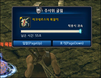 • 주사위 굴림으로 설정된 아이템을 습득할 경우, 아래와 같은 UI를 통해 입찰할지 포기할지를 선택할 수 있습니다.