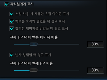 (자신이나 파티원) 일정 이상 데미지, HP 대비 일정 비율시