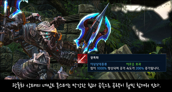 자바르만 돔에서 등장하는 네임드 몬스터들은 전투 시간이 15분 이상 지속되면 광폭화 상태가 되어, 강한 데미지와 찰나의 이동속도로 여러분을 당혹스럽게 만들 수도 있습니다.