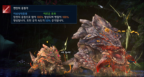 주룩주룩 내리는 빗속에서 두 번째 네임드 몬스터 베바카논과의 전투가 시작됩니다.