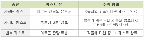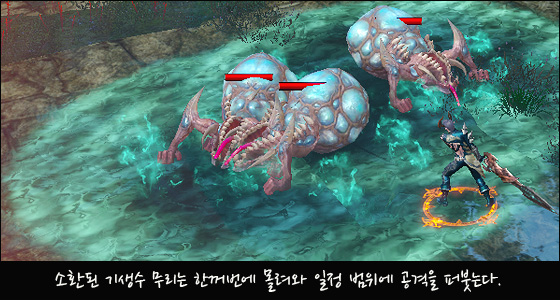광범위 공격 라마얀 자바르만의 HP가 점점 줄어들 때마다, 은신처 중앙으로 이동하여 광범위하게 즉사할 만큼의 강한 공격을 시도하며, 이때 맹동 기생수 무리가 함께 소환됩니다. 맹독 기생수 무리