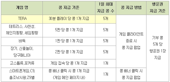 ▣ 각 게임 별 콩 획득 방법