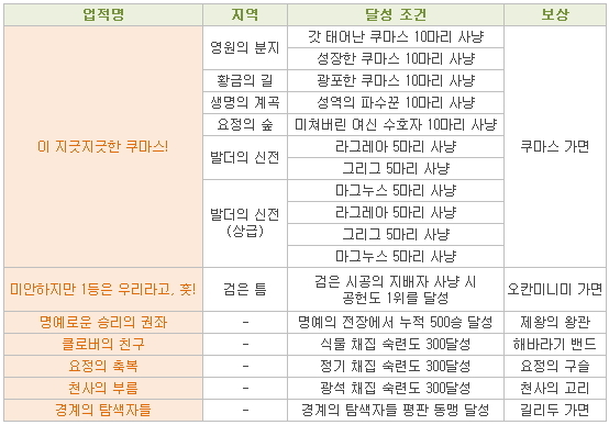 업적을 통해서는 장신구, 탈 것뿐만 아니라 칭호와 다양한 추가 보상 아이템을 획득할 수 있습니다.