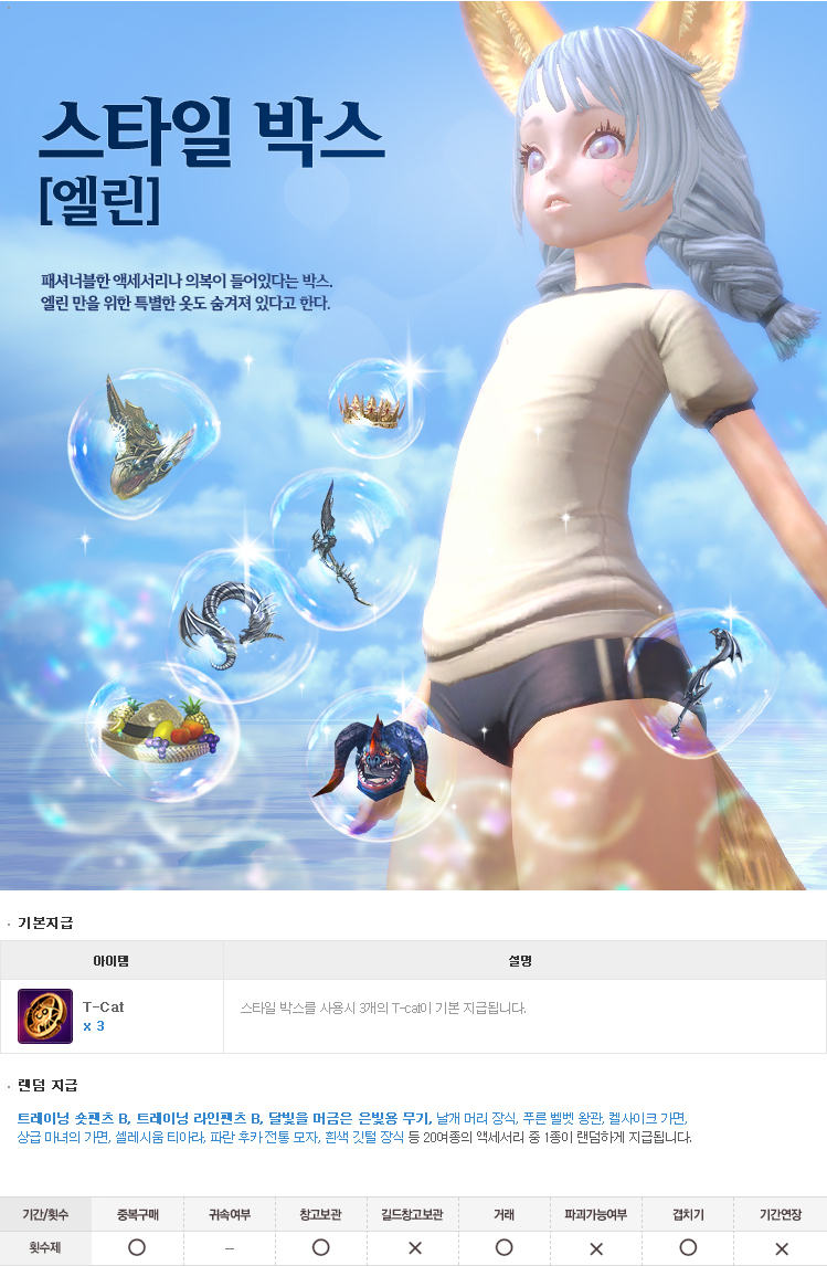 스타일 박스는 4종족 여자 케릭만 있습니다.
