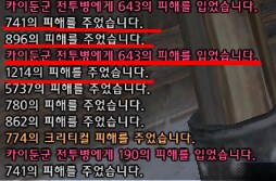보는 바와 같이 첫타에 741-896-1214(노크리) 피격데미지는 643을 입었습니다.