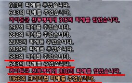 보는 바와 같이 첫타에 583-643-1166(크리) 피격데미지는 830을 입었습니다.