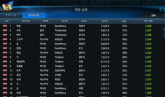 (▼ 아래의 순위는 2012년 11월 13일 기준 게임 내 투지의 전장 순위입니다.)