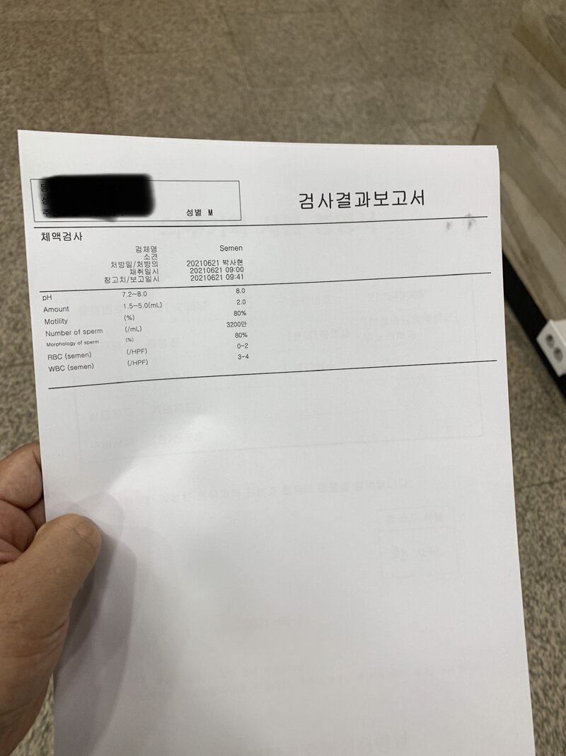 2세 계획중인데 나이가 있어서 살짝 걱정이 되더라. 그래서 정자 검사 받고 옴.
