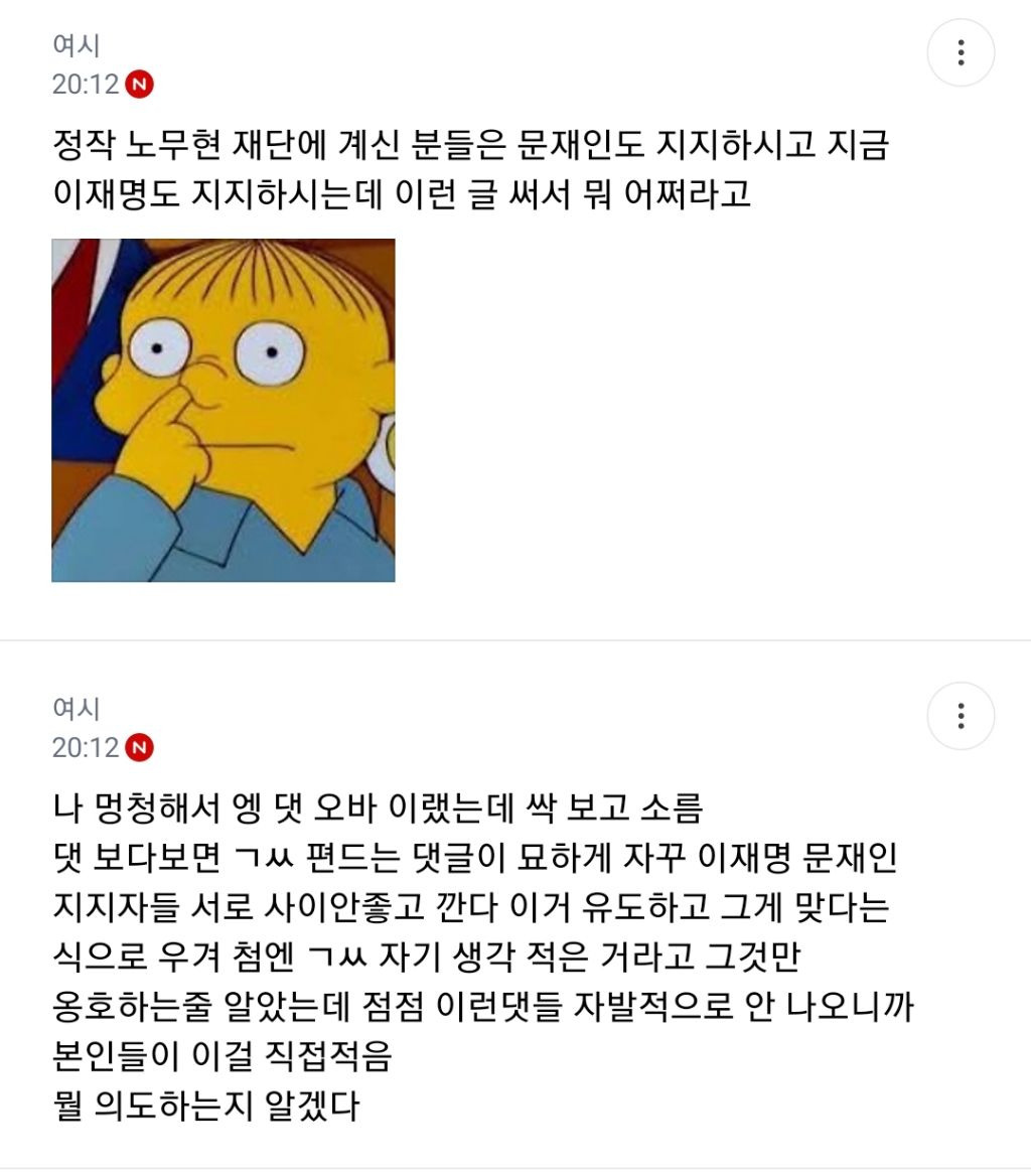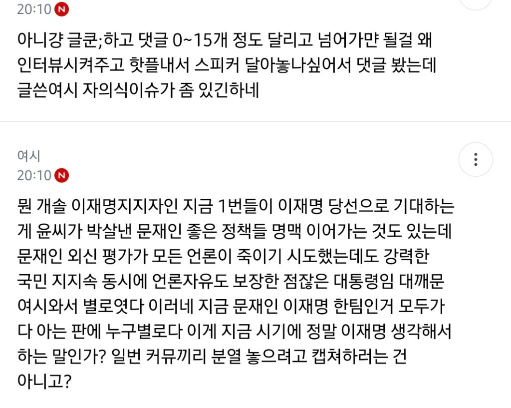 그리고 ㄱㅆ 쉴드치는 이상한 자분댓글이 저런 댓글에 반박하면서 앺초에 이재명이랑 문재인은 파이 다르다 이지랄 ㅋㅋㅋㅋㅋㅋ (그래서 지지자들 성향 달라서 원래 서로 까가 많았다는 식^^)