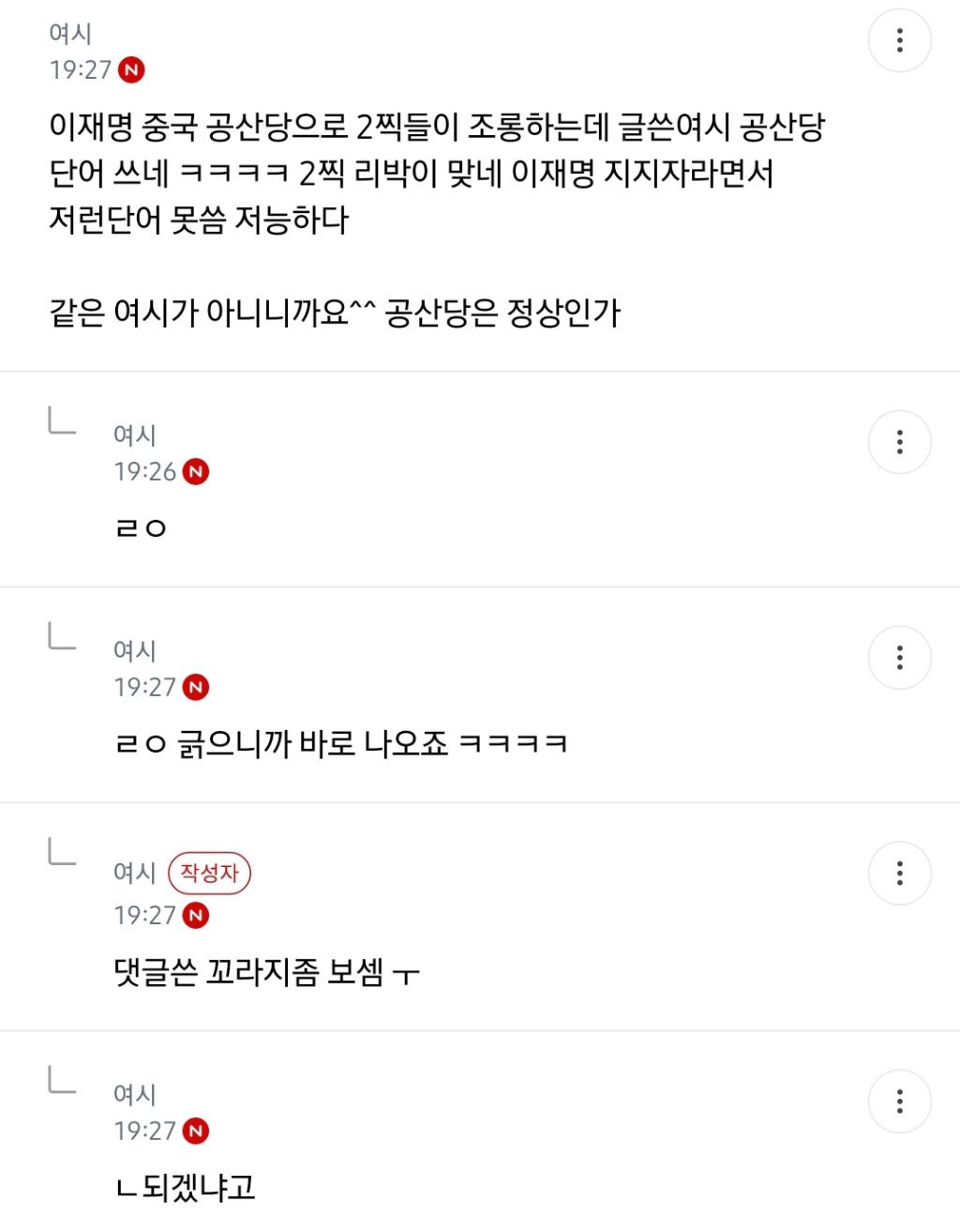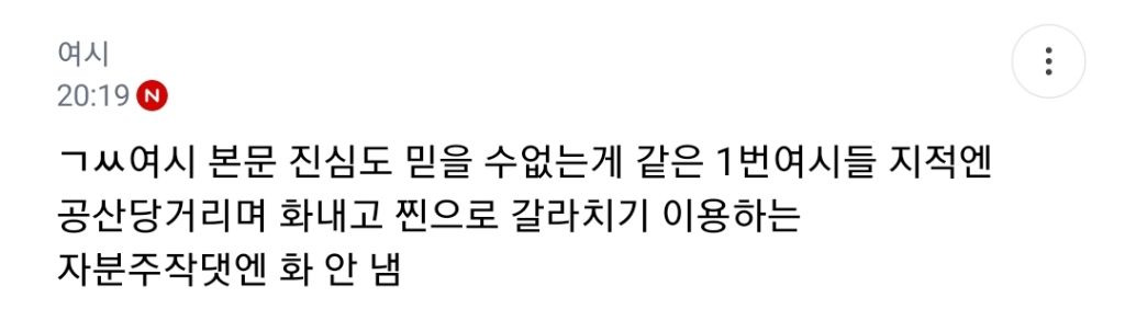 캡쳐 못했는데 ㄱㅆ이 자기 지적하는 여시들한테 공산당 드립침