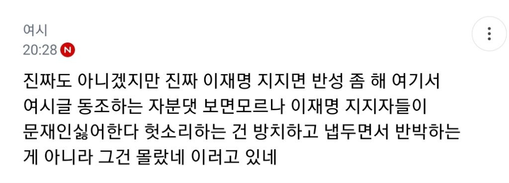 정말 1 지지자고 지금 이재명을 응원한다면 저런 댓글 보고 화를 내야 정상인데ㅋㅋㅋㅋ 저런 댓글엔 가만히 있다가 지적하는 댓글 나오니까 저 댓글이 말한 헛소리를 기정사실화 하면서 몰랐다 이지랄