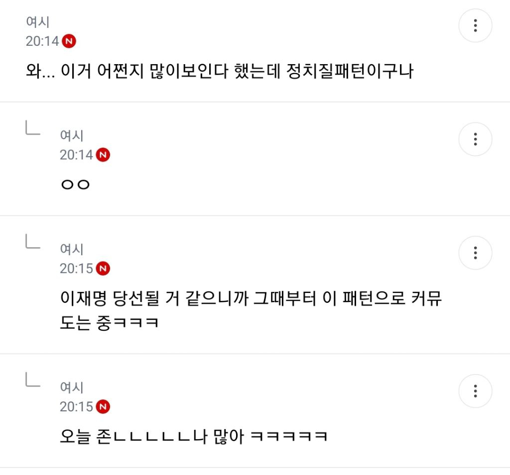 나원래 OOO 지지 안했는데, 이재명은 뽑음(지지함) 글들 또 유행함 ㅋㅋ