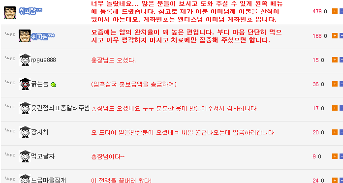 그리고 살고싶다는 엔터스의 뎃글까지 올라오면서 웃대 회원들이 본격적으로 기부활동을 시작하게되었는데,