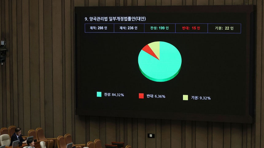 양곡관리법·농안법·공항시설법, 국회 본회의 통과![]() 양곡관리법과 농수산물 유통 및 가격안정법, 이른바 농안법이 국회 본회의를 통과했습니다. 여야는 오늘 국회 본회의에서 양곡관리법을 표결해 부쳐 재석 의원 236명 중 찬성 199명, 반대 15명, 기권 22명으로 합의 처리했습니다. 여야 의원들은 농안법에 대해서도 재석 의원 237명 중 205명이 찬성표를 던져 본회의를 통과시켰습니다. |