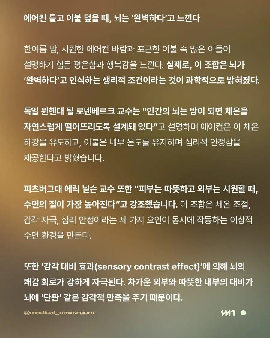 뇌가 완벽하다고 느끼는 상태![]() 오늘부터 에어컨 풀파워 구스다운 이불 덮고 잔다 |