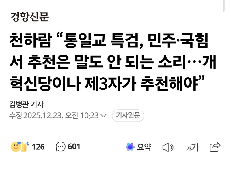천하람 “통일교 특검, 개혁신당이나 제3자가 추천해야”![]() ![]() ![]()