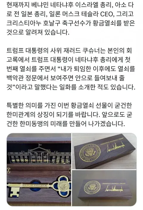 트럼프 황금열쇠 5개중 마지막 열쇠 이대통령께 선물![]() ![]() 대박