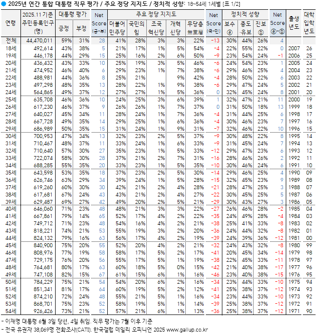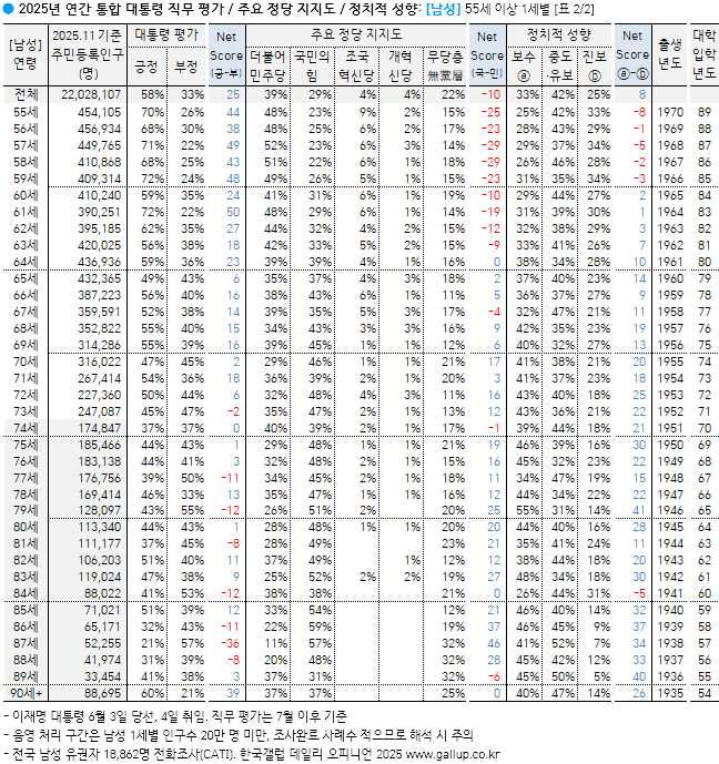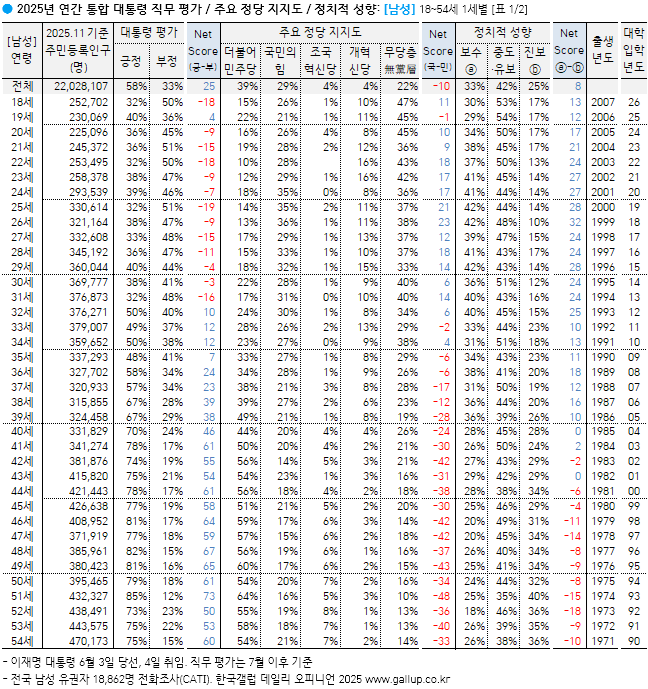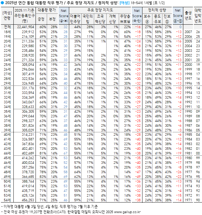 갤럽 2025년 통합 이대남, 이대녀 정치성향을 알 수 있는 그래프![]() https://www.gallup.co.kr/gallupdb/reportContent.asp?seqNo=1610