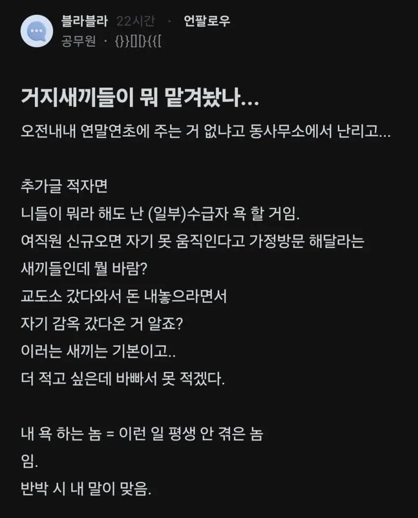 일부 기초 생활 수급자 때문에 개빡친 공무원![]() |