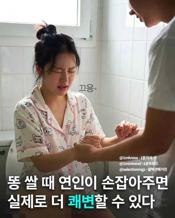 똥 쌀 때 연인이 손을 잡아주면 더 잘 나온다![]() ![]() 제가 인생에 변비 단 한번도 없는 쾌변러인데 확실히 좀 마음 급하면 제대로 안나옴 |