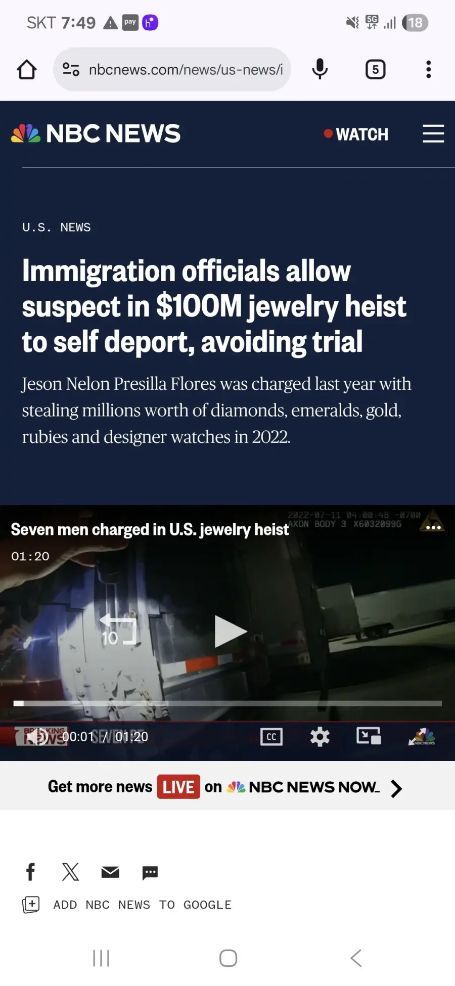 ICE 덕분에 1300억원 보석 강도가 자진 출국![]() 1. 미국 역사상 최대 규모인 한화 1300억원 상당의 보석 강도 사건 용의자 중 한 명이 연방 기소를 피하게 사실이 알려짐 2. 알고보니 기소 되어 있던 용의자는 ICE에 통해 본국인 에콰도르로 '자진 추방' 3. 연방 검찰은 용의자가 추방되었다는 사실을 뒤늦게 알고 당혹감을 표했으나, 이미 사건은 종결된 상태 4. 법원은 실수의 근거로 해당 용의자에 대한 기소를 기각, 더이상 동일한 혐의로 재기소할 수 없도록 판결 5. 소통 부재로 인해 거액의 범죄를 저지른 용의자가 처벌 없이 미국을 떠나게 되면서 논란 |