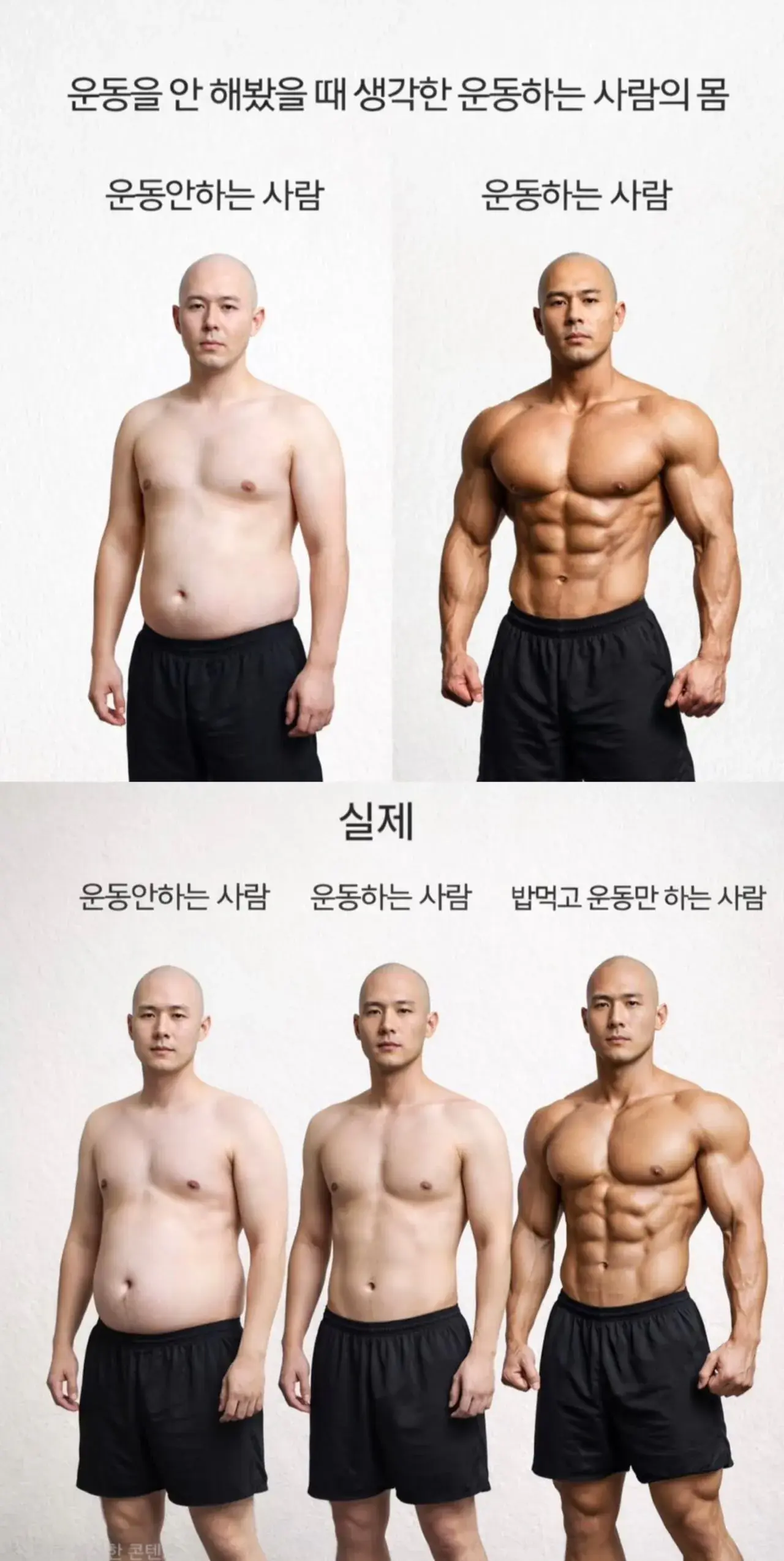 운동을 안 해봤을 때 생각한 운동하는 사람의 몸![]() 밥도 식단 제대로 해야함 |
