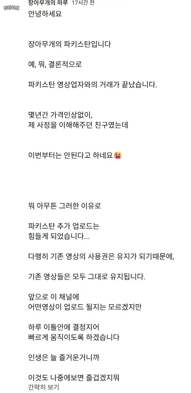 원조 오평파 유튜버 근황![]() 오늘도 평화로운 파키스탄 채널 종료 린도린도랑 오평파 같이 올리다가 인도 파키스탄 분쟁으로 두 영상업자들이 같은 채널에 영상 올라오는거 거부함 그래서 오평파 린도린도 채널 분리했었는데 오평파 서비스 종료함 |