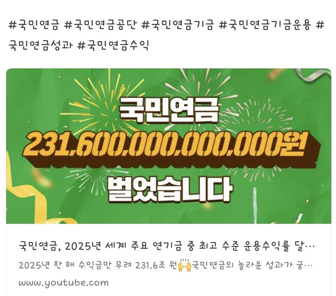 국민연금 231,600,000,000,000원 벌었습니다![]() ![]() 이제부터 연금만 따라간다 |