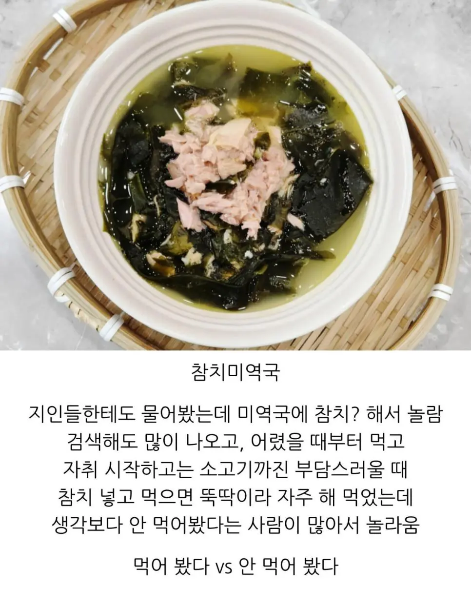 은근 먹어본적 없다는 사람 많은 음식![]() 미역국에 왜 참치?? |