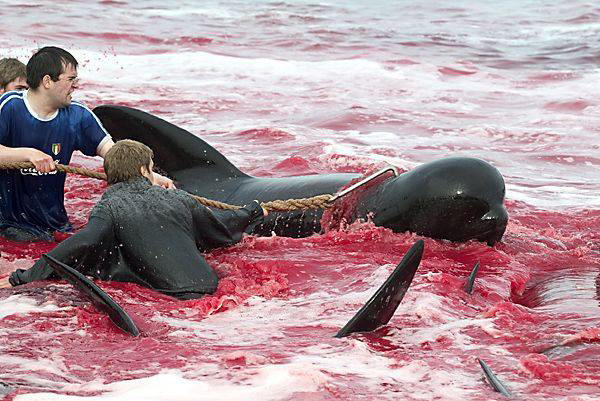 그리고 설사 사냥을 한다고 해도 저렇게 피가 낭자할 필요가 있는가? 요즘 첨단을 자랑하는 기술들은 모두 어디 갔는가? 일단 그물로 꼼짝 못하게 만들었다면 전기충격, 약물, 독 등. 고통없이 한방에 보내줄 수 있는 방법은 수도 없을 것이다. 왜 궂이 갈고리와 작살로 죽을때까지 찌르고 피흘리게 해야 하는가?