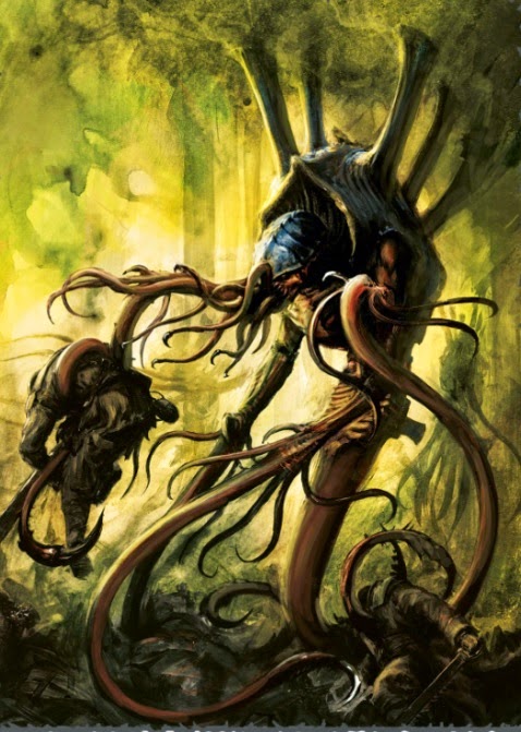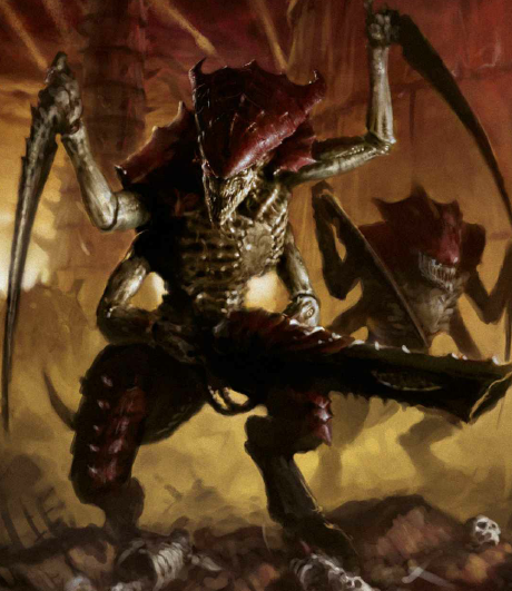 (브금, 극초스압주의)워해머40K 13탄 타이라니드편bryce116입니다~ 오늘은 은하계의 최상의 포식자 타이라니드를 소개해드리겠습니다 물량에 대해서는 다른 종족들을 뛰어넘고 진화도 하고 상황에 맞춰 적응까지 하는 무시무시한 녀석들이죠 오늘은 매우 짱 엄청 긴 글이 될것같네요 경고!!!! 심호흡해주세욧!!! 이번편은 겁나겁나겁나 길으므로... 읽는 것에 주의가 필요합니다 타이라니드 ![]() 제국을 갉아먹는 암덩어리들이 있다 수십년이 넘게 진군하고 빨아들여서 죽음의 행성들을 일깨운다 상상도 할 수 없는 생각과 목적을 가진 이 공포, 혐오스러운 것들은, 본능에 의해 풀려난 은하계 규모의 생체 무리들로 우리가 반드시 막아야한다 우리는 그 공포에 타이라니드라는 이름을 붙여 우리가 가진 공포를 달랬다 하지만 우리가 깨달은 것은 기도밖에 할 수 없다는 것이다 -이단심문관 씨제백 할의 비밀회의에서 타이라니드들은 타협이 불가능한 최상의 포식자 위치의 외계 괴물들입니다 이들은 세기 힘들정도의 시간동안 은하계에서 은하계를 넘어다니며 생명체를 빨아들이고 행성들을 흡수하였습니다 그렇게 긴 시간동안 이동을 하였고 마침내 워해머의 세계가 펼쳐져있는 지금의 은하계로 넘어옵니다 길고 고된 여정으로 지친 타이라니드들은 동면에 들었지만 그중 몇몇의 개체들은 새로운 사냥감들의 냄새를 맡고 깨어났습니다 이들에게 있어서 다른 종족은 모두 먹이로 밖에 보지 않습니다 워해머의 세계에서 이들의 공격을 당한 적이 없는 종족은 없고 워프의 세계를 제외하고는 모든 곳에 발톱을 뻗습니다 이들이 처음으로 알려진 것은 베헤모스 함대에 의한 타이란 행성의 공격이었고, 이 사건으로 이들에게는 타이라니드라는 이름이 붙습니다 타이라니드라는 이름을 붙이고 타이라니드에 대한 공포를 여기저기에 강조하는 자가 있었는데, 바로 인쿼지터 로드 크립트만입니다 ![]() 하나의 목숨을 가지고는 운명을 바꿀 수 없다 수십명도 안되고, 수백명도 안되고, 수천명도 안된다 우리의 행동으로 수십억이 생존하고 죽는다 그리고 우리는 그 수를 새는 사치를 누릴 수 없다 -인쿼지터 로드 크립트만 인쿼지터 로드 크립트만은 오르도 제노스 소속의 인쿼지터 로드입니다 그는 마카리안 반란을 제압하여 영웅의 칭호를 받은 자이기도 합니다 그런 그에게 연락이 두절된 타이란 행성을 조사하라는 명령을 내려지고 타이란 행성으로 파견됩니다 황페화된 행성에서 여러 자료들을 조사한 크립트만은 지금까지는 본 적이 없는 외계인들의 소행이라는 것을 알아내고, 이 외계인들에게 타이라니드라는 이름을 붙입니다 그때부터 크립트만은 타이라니드에 대한 큰 관심을 보이며 이곳저곳을 다니며 타이라니드의 일에 관여하고 있습니다 타이라니드의 베헤모스 함대가 울트라마린의 모행성을 공격하자, 크립트만은 울트라마린의 챕터 마스터 마그누스 칼가에게 위험성을 알리고 마크라지에 방어선을 구축합니다 결국에는 베헤모스 함대를 물리치고 막아내는데 성공합니다 크립트만은 계속해서 타이라니드에 대해 연구하였고 하이브 마인드가 사용하는 워프의 그림자와 진스틸러들의 존재도 알아냅니다 그리고 울트라마린 4중대장 우리엘 벤트리스의 부대에 합류하여 타이라니드를 계속해서 생산해내는 노른 퀸에게 자신이 만든 독극물을 주입시켜 타이라니드 함대 전체를 무력화시키는 활약도 선보입니다 하지만 레비아탄 함대가 2개로 나뉘어 진군하자, 크립트만은 자신의 권한을 사용하여 레비아탄 함대가 지나가는 항로에 있는 모든 행성에 익스터미나투스를 실시합니다 물론 행성을 모두 불모지로 만들어 타이라니드 함대의 진군을 늦춘 것은 좋았지만, 그 과정에서 수백억이 넘는 제국민들이 목숨을 잃었고, 이단심문소에서는 호루스 헤러시 이후의 역사상 최악의 학살이라 칭하며 크립트만을 파문하는 동시에 사형선고의 낙인인 카르타 익스트레미스를 선포합니다 낙인이 찍힌 후에도 크립트만은 계속해서 타이라니드를 막기위해 고군분투하였고 타이라니드와 오크가 싸우게 되는 옥타리우스 전쟁을 일으키게 만듭니다 덕분에 레비아탄 함대는 옥타리우스 전쟁으로 눈을 돌렸고 끝없이 진화하는 타이라니드들과 즐거운 Waaagh를 위해 우주전역에서 몰려드는 오크들은 옥타리우스 행성에서 전쟁을 벌이는 중입니다 문제는 이 전쟁에서 이기는 쪽은 예전보다 휠씬 강력해지기 때문에, 어느 쪽이 이겨도 인류 제국에게는 재앙이나 다름없습니다 그런데 이 셀 수 없을 정도로 많은 외계인들을 누가 조종하는 것일까요? 그것은 바로 타이라니드들의 지성이 뭉쳐서 만들어진 하이브 마인드입니다 하이브 마인드 죽어버린 검은 눈을 들여다 보았을 때, 나는 영혼 대신에 있는 공포스러운 지성을 보았다 눈 뒤에는 그들의 지도자의 강철같은 의지가 있었다 더 깊은 곳, 공허속에서 나를 냉정하게 가늠하고 있는 놈들의 실체를 보았다 그리고 내가 본 외계인들의 정신중 가장 깊은 심연을 회고하면, 그것은 끝없는 굶주림이라고 표현할 수 밖에 없다 우리는 우리 세계의 타이라니드들을 죽이고, 그들의 함대