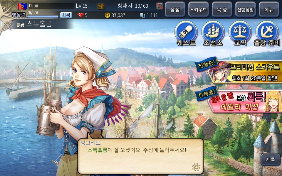 항해사 일러스트도 멋지고, 대항해시대 2 같은 옛 생각도 나는 게임입니다. 행동력이 늘 부족하지만요 ㅠ.ㅠ ![]()