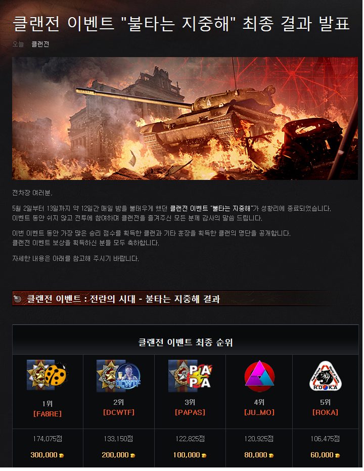 Kaznet,833FA브라보,daeilsys,제로미트,할렁이 PAPA 클랜 인벤 인터뷰 클랜전 이벤트 "불타는 지중해" 3위