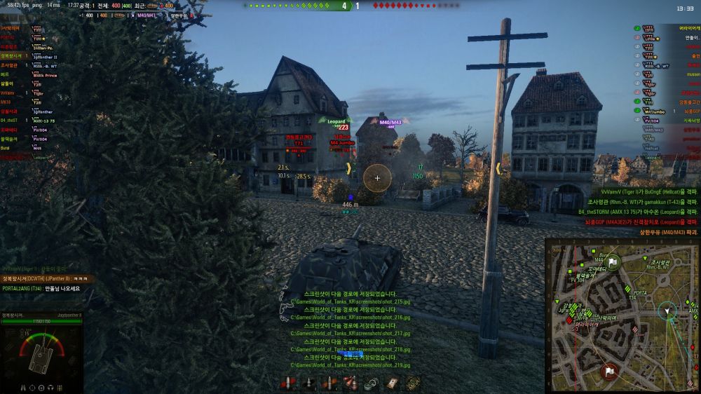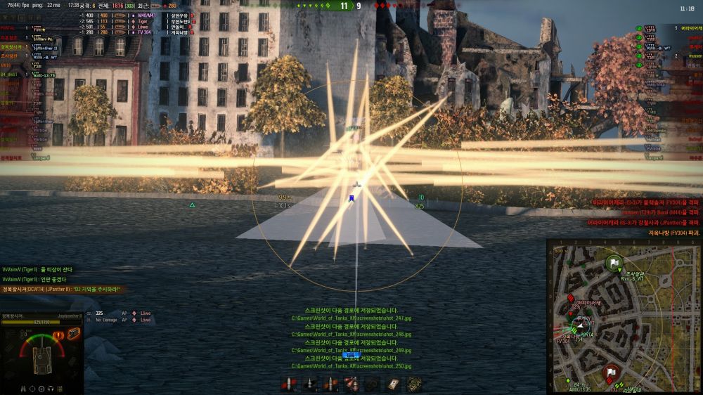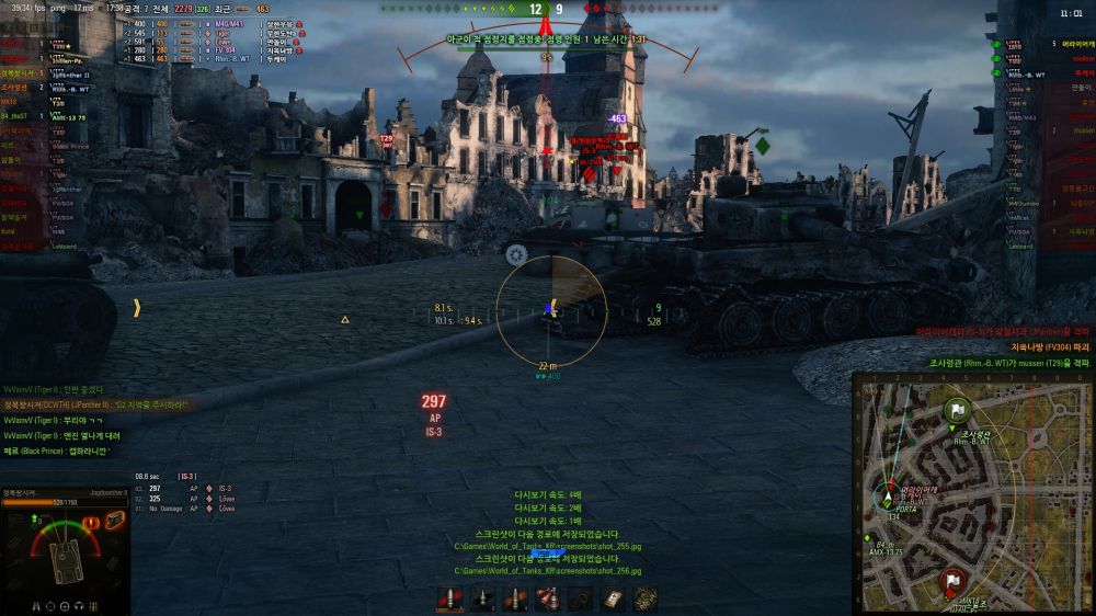 기동 구축의 즐거움 - 야판투 탑건 스토리헤헤 이판 먹을게 많을거라 예상된다 캬 ~ 역시 또뽀끼!! 하나의 장렬한 불나방이 되어 스팟 띄워주신다!!! 이제 줏어먹자 일단 탑티어인 자주포를 노려보도록 하자 (킬딸 치고싶었음 ^^) 쐈다!! 명중 ^^ 히익!! 뱃보이도 눈은 있나보다 상콤히 피해주자 그래도 굿맨타치들보다 확실히 반응속도가 느림. 내가 자주포 잡는동안 뭐했노 이기야!! 다음 타겟은 점보셔먼 장전 다되어간다!! 어라?? 스팟 사라짐 ;;;; 하지만 난 10k 산전수전 다 겪은 베터랑 ^^ 블라인드샷을 날려보자 KIA~ 주모! 여기 독궈뽕 한사발 주소!!! 슬슬 적이 너무 시시하다고 느낀다 다음은 티-거 아군이 다 뒤져버리고 혼자남았서야!! 내가 킬 먹었다 야호!! 시가지를 보니 중앙에 적이 득시글하다. 지금 딱 저쪽으로 튀어가면 옆구리 죽창 찌를 수 있을꺼라 판단된다 호옹이??? 친구들 놔두고 왜 혼자있노????? 일단 한대 맞아주고 궤도 끊어드렸읍니다 크으 ..... 역시 뱃보이 ...... 창분 틈으로 조준하는거 알지도 못하고 재장전 쿨타임은 가고 있다 뢰베 측면장갑 상향해봤자 이건 이치로포랑께 ..... 246관통이란다 캬~ 또 킬먹음 ㅎㅎ 슬슬 4킬 하니까 탑건 욕심도 난다 우측으로 가서 지원해줄까 뒤 돌아서 똥꼬 빨아줄까 고민중. 일단 가속을 살려 전진하고 똥꼬 빨아주기로 한다 호옹이??? 넌 홍퀴벌레 아니盧??? 하필 여기서 만나다닠ㅋㅋㅋㅋㅋㅋ 이따다끼마스~!! 쿠콰쾅!!! 먹어 드렸읍니다 ^^ 헠헠!! 저것만 잡으면 탑건이다!!! 캬~ 피격 이펙트 보소~ 엠창 쐈는데 하급뎀 떠서 라인메탈 피 2남음;;;;; 충각할려고 달려갔는데 에미뒤진 궤도 끊어짐;;;; 차라리 피 깎이는게 나은데 ㅅㅂ 에임에서 가까이있는 숙삼부터 먹기로 한다 라인메탈은 충각해서 잡을 기회가 또 있겠지 뭐 이제 충각만 하면!!! -_- ;;;;; 아쉽노 .... 기동구축 정말 재미있네요 ..... 새삼스럽게 263 뚫고싶어짐 ㄷㄷ;;;;; 수백만원 타다가 포기했었는데 .....