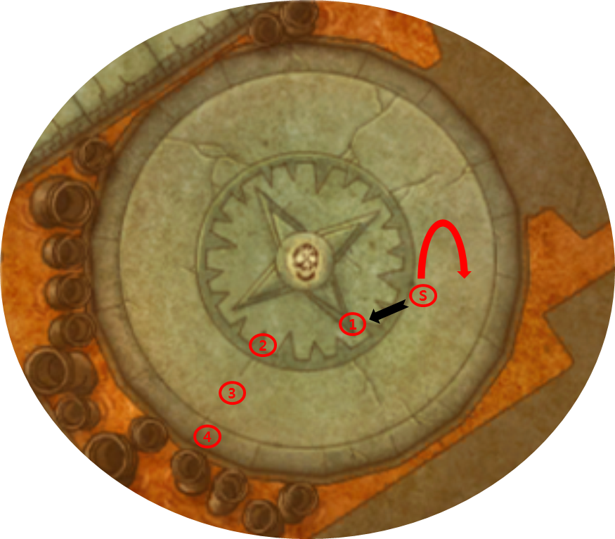 - 5레일이 시작되기직전 즉 4레일 자력파쇄가 2초 ~ 4초 남았을때 공대 전체는 ( 4 ) 지역에서 ( 1 ) 지역으로 이동을합니다. - 이때 늦게온다면 레이져 대상이 있기때문에 늦은사람에게 온다면 공대가 이동해야할 바닥에 레이져를 깔아버리기에 정확하고 신속하게 이동합니다. 드루 클래스가있다며 [쇄도의 포효] 스킬을 사용해줍니다.