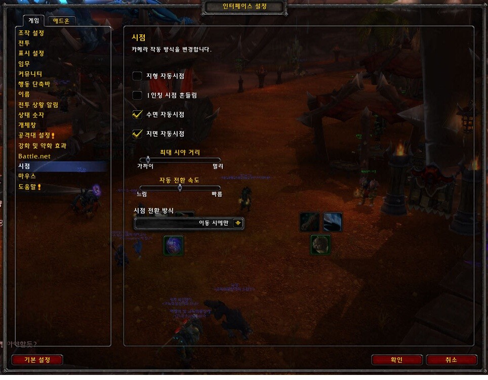 1. 스샷과 같이 최대 시야거리를 최대한 가깝게해도 계속 멀어짐. 2. 최대 시야거리를 늘리는 애드온은 쓰지않음. 3. 피시방서 다른사람이 설치해둔 애돈으로 접한이후 이러함. 4. WTF, Interface 폴더를 날린후 애드온 제설치해도 마찬가지. 5. 노 애드온으로 싹다 지우고 시작해도 마찬가지 (설정에서 기본설정으로 돌리거나, 클라이언트 설정초기화를 해도 마찬가지) 6. 추측에 블쟈드 서버쪽에 각인이 된게 아닌가 싶음