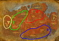 {검은색 화살표 정예3종퀘 로밍구역, 검은색화살표동글게(두른로밍지역), 검은색동글작은거(뿔엄니리젠지역)}