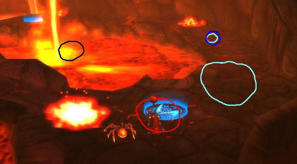 붉은곳이 푸른오라 인데 버프를줍니다 그런데 그닥 필요는 없습니다. 일단 파티원한명이 (아무클래스 희생자)파란색동글로갑니다 거기서 공격하시고 하늘색 지점에 얼덫을깝니다 미리 설치하세요(올가미 특성 연마 ) 참고로 푸른색 파티원자리에서 붉은색 테이밍 지점까지 적당한거리가 되야합니다