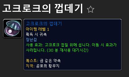 판다리아 장난감 1~8위- 이전의 참고글: 영원꽃골짜기, 장난감 1위~3위 세기말에 하기 좋은 장난감 작업입니다 영원꽃골짜기의 글은 작성했으니 기타 판다리아 지역에서 현재시점에서 아직도 쓸만한 장난감 중의 1위~8위 모아봤습니다 ★ 판다리아 장난감 특징 - 대부분 드랍률이 5% 정도라고 보면 됨 - 30분 정도마다 희귀몹이 새로 나옴 - 같은 캐릭으로 하루에도 여러번 잡아서, 여러번 장난감을 노릴 수 있음 - 일반모드캐릭 & 전쟁모드캐릭으로 동시에 2번씩 작업할 수 있음 전쟁모드캐릭으로 잡았다가 주변여관에서 일반모드로 바꾸고 또 사냥하는 것도 가능하긴 함 - 잘 안쓰는 부캐 등을 해당 희귀몹 근처에 야외캠핑 주차해 놓거나, 근처 여관귀환 설정하면 편함 판다 장난감위치 애드온 >>> 2개 모두 깔아야 보입니다 핸디노트 기본애드온 핸디노트 판다리아 ![]() 1위 - 아이리의 하늘거울 ★★★★★ - 전장&인던 사용가능 ![]() 위치 ![]() 상대 플레이어의 모양을 따라 갖춥니다 반사프리즘 템과 비슷하다고 볼 수 있습니다 그 모습으로 전투도 가능합니다 중요한 점은 자신을 클릭해서 스스로에게 사용도 됩니다 이 점이 ★★★★★ 를 주는 점입니다 여러가지 응용이 가능합니다 예를 들면 마법 애완동물 거울로 펫모양으로 변신하고 (이건 원래 전투하면 풀림) 스스로에게 아이리하늘거울을 사용해서 형상을 간직한 후에 전장에 입장해서 전투할 수 있습니다 자신에게 사용하면 전투가 시작되면 풀리는 변신형상을 전투가 되어도 유지할 수 있습니다 사용모습 - 상대플레이어의 모습을 복사합니다 ![]() ![]() 2위 - 판다렌 폭죽 발사대 - 전장&인던 사용가능 ![]() 위치 ![]() 상당히 화려하고 오래 지속되는 폭죽발사대입니다 전장과 인던 등에서 사용 가능합니다 물빵이나 생명석샘 뽑는 매크로에 같이 쓰면 좋습니다 - 매크로 예시 #showtooltip 생존기이름 /사용 판다렌 폭죽 발사대 /시전 생존기이름 ![]() ![]() ![]() 3위 - 호젠 물놀이 공 - 전장&인던 사용가능 ![]() ![]() - 매크로 예시 (장난감 2개 사용으로 햡쳐 봤습니다 #showtooltip 생존기이름 /사용 호젠 물놀이 공 /사용 판다렌 폭죽 발사대 /시전 생존기이름 귀여운 물놀이 의상으로 바뀝니다 무기가 귀여운 삽모양으로 변합니다 ![]() ![]() ![]() 4위 - 비전석 조각 - 전장&인던 사용가능 ![]() ![]() 비전투중에 쓰면 상대방이 클릭이 불가능한 석상으로 변합니다 전장&인던에서 사용 가능합니다 전장 거점 수비할때 사용하면 좋습니다 상대진영 플레이어가 클릭하거나 공격을 할 수 없지만 광역을 치면 변신이 풀립니다 ![]() ![]() 5위 - 고크로크의 껍데기 (100%드랍 - 전장&인던 사용가능 조개를 잡으면 퀘템을 100%주고 퀘를 완료하면 장난감을 줍니다 ![]() - 매크로 예시 #showtooltip 공대생존기이름 /사용 고크로크의 껍데기 /시전 공대생존기이름 장난감 사용모습 ![]() 6위 - 절친 목걸이 (100% 드랍 상대 플레이어에게 애정을 표시하는 동작과 함께 사랑&우정의 24시간 버프를 걸어줍니다 - 전장&인던 사용가능 ![]() ![]() 아래 화살표의 동굴 입구로 들어갑니다 ![]() ![]() 7위 - 머나먼 물의 소라 천리안 기술처럼 멀리 볼 수 있는 장난감입니다 - 전장&인던 사용가능 ![]() ![]() ![]() 8위 - 호젠 평화 담뱃대 장난감은 아니고 소모품입니다 판다리아의 모든 평판을 1000씩 올려줍니다 사용하면 일주일이 쿨입니다 여러개 모아놓고 매주 사용해주면 여러지역의 확고탈것과 확고상품을 살수 있습니다 - 물론 이 방법은 단기적인 평판작업은 아닙니다 아이템 설명을 보니 귀속이란 말이 없는데 경매장 거래가 될 것 같습니다?_? ![]() ![]() 사용장면 ![]() ![]() ![]()