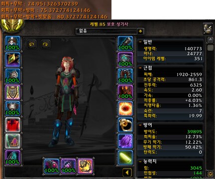 물론 회피무막은 데미지를 100퍼센트무시하여 완방이라고하죠 제일 중요한수치라고생각합니다. 하지만 너무 재수빨을 많이 받기때문에 ( 거기다 현재 대격변초기상황 완방30퍼이상맞추기는 정말힘들죠 ) 완방으로 몽땅밀자니 좀 부담감과 두려움이 느껴집니다.